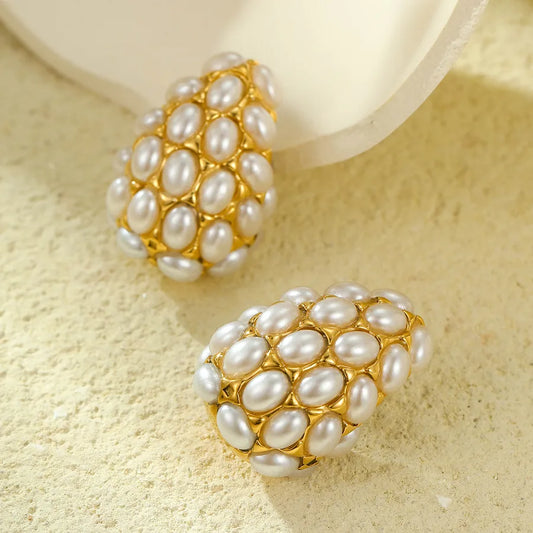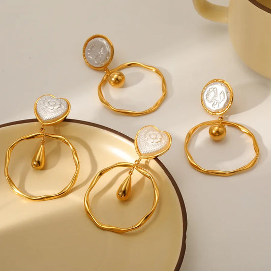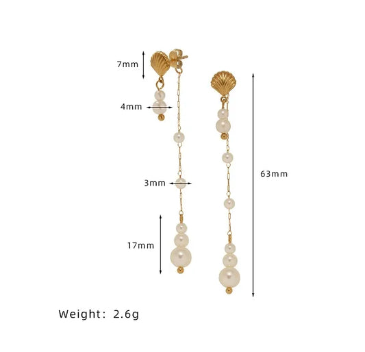 Boucles d’oreilles pendantes en acier inoxydable avec perles et nacre