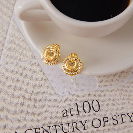 Boucles d’oreilles spirales rondes en acier inoxydable avec strass