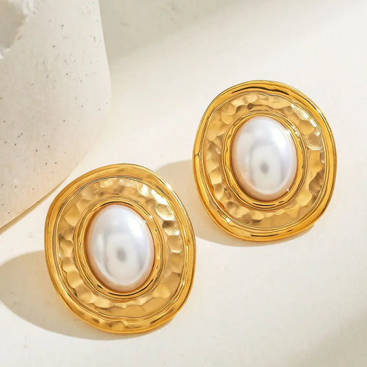 Boucles d’oreilles ovales géométriques vintage en acier inoxydable