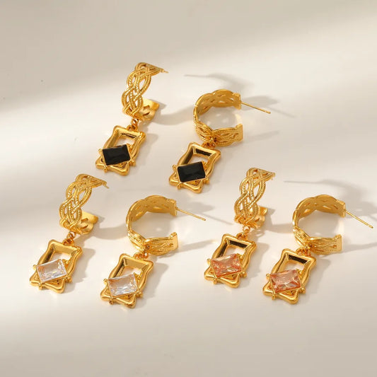 Boucles d’oreilles rectangulaires en C en acier inoxydable avec zircons