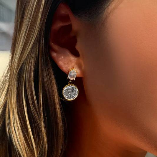 Boucles d’oreilles portrait de reine en acier titane avec micro-zircons