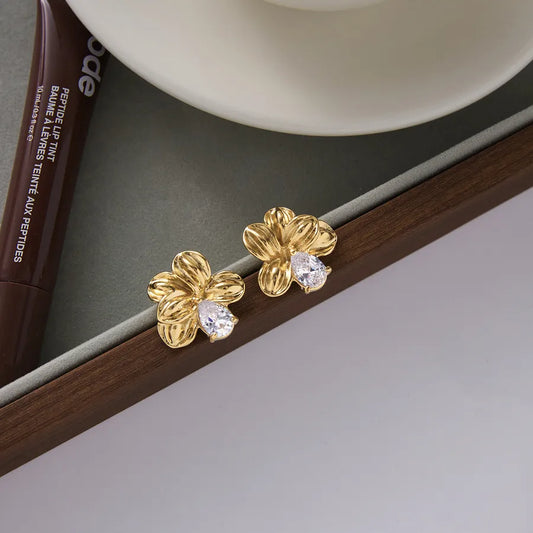 Boucles d’oreilles goutte fleur en acier inoxydable avec zircones
