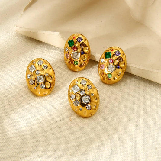 Boucles d’oreilles ovales en acier inoxydable avec zircons colorés