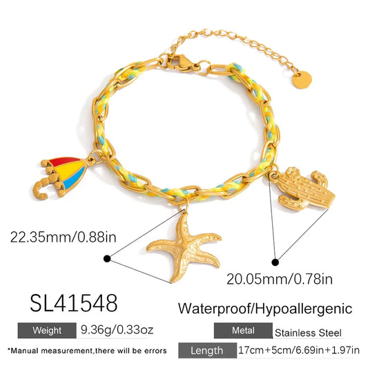 Colorful Rope Stainless Steel Starfish Ocean Elements Bracelet 18K Gold Plated Sea Life Pendant Women's Fashion Jewelry Accessory