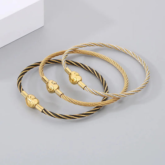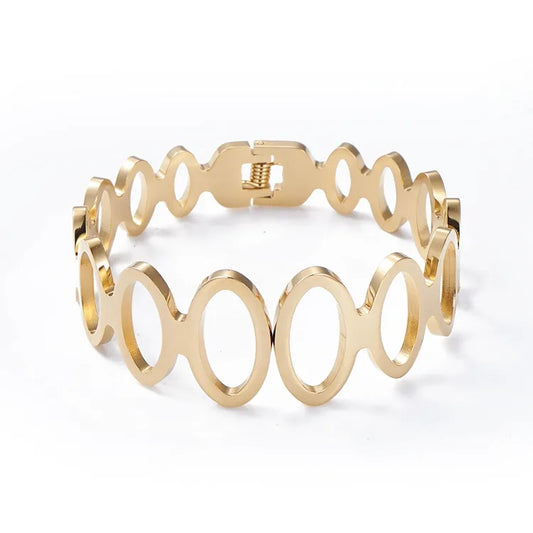 PVD Coated 18K Real Gold Plated Round 304 Stainless Steel Bracelets