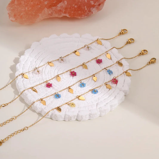 Fashion INS Beaded Flower Stainless Steel Bracelet for Women Exquisite Sweet Versatile Hand Jewelry Wholesale