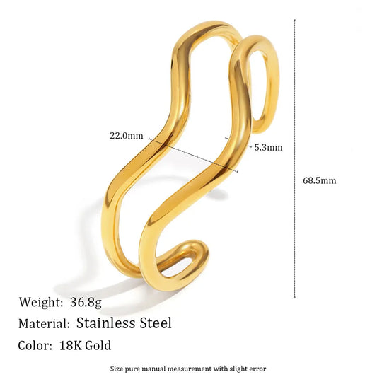 Women's Style - Minimalist Design / 18K Gold Stainless Steel / Line Double Layer Hollow Asymmetric Wave Open Bracelet