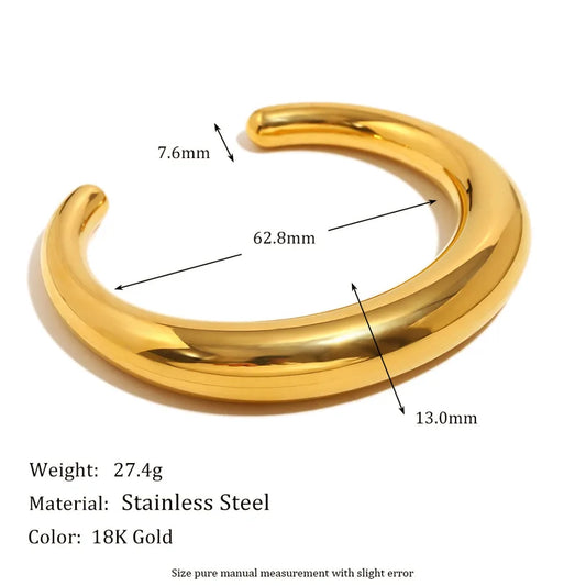 Modern Minimalist Ladies Bracelet Exaggerated Wide Open Hand Jewelry Stainless Steel 18K Gold Plated Travel Suitable Basic Style