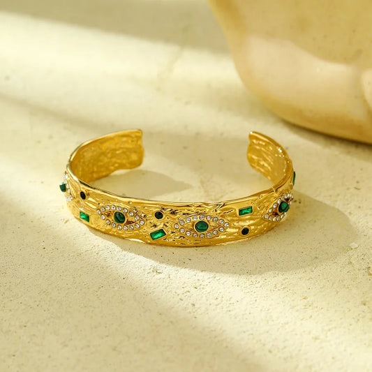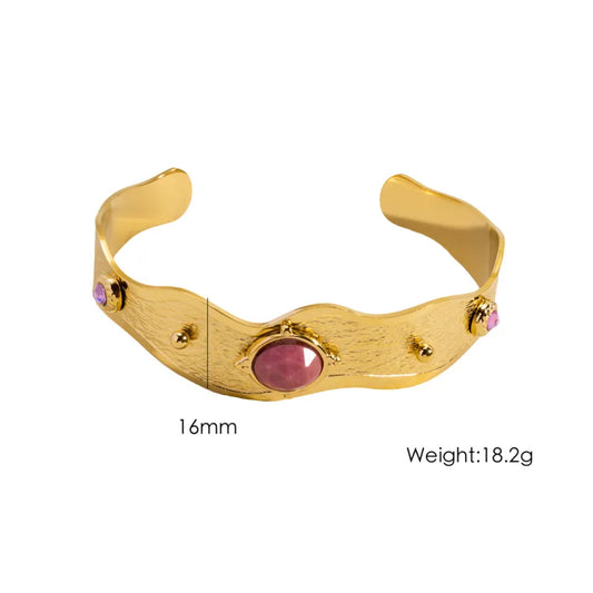 Wide Face Open Stainless Steel 18K Gold Plated Bracelet Elegant Luxury Female Style Artistic Drop Pattern Agate Embedded Casual Street Snap Selfie