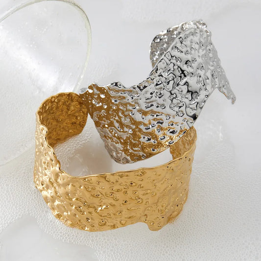 Stainless Steel New Geometric Irregular Texture Wide Adjustable Open Bracelet Electroplated High-Quality Non-Fading Jewelry Factory Wholesale