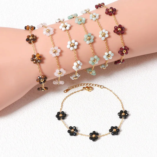 Style Stainless Steel Flower Bracelet For Women Titanium Steel Natural Stone Hand Jewelry Unique Design