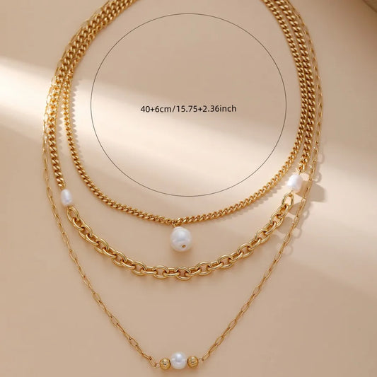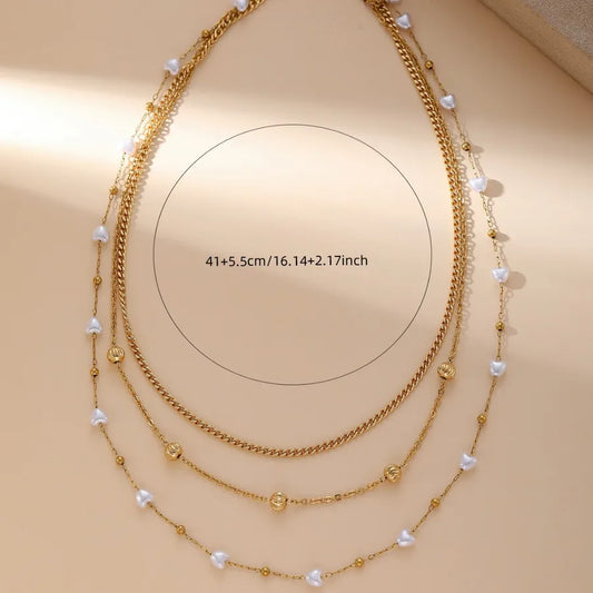 Women's 18K Gold Plated Stainless Steel Necklace With Small Pearl Chain Three Layer Independent Packaging Luxury Minimalist Style