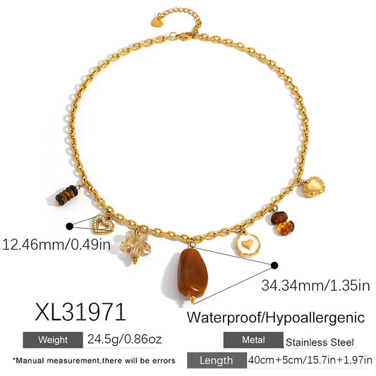 Handmade Stainless Steel Necklace For Women Non-Fading Oil Drop Flower Titanium Steel Fashion Jewelry Accessories