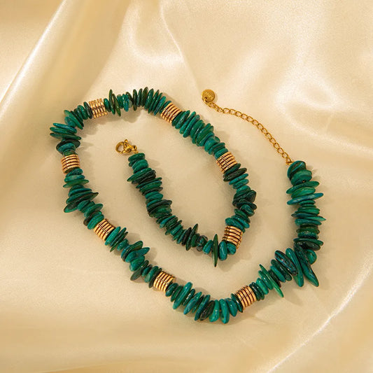 Collier irrégulier en pierre naturelle et acier inoxydable doré