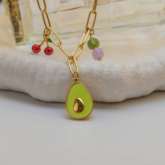 Collier en acier inoxydable avec pendentifs cerise & avocat