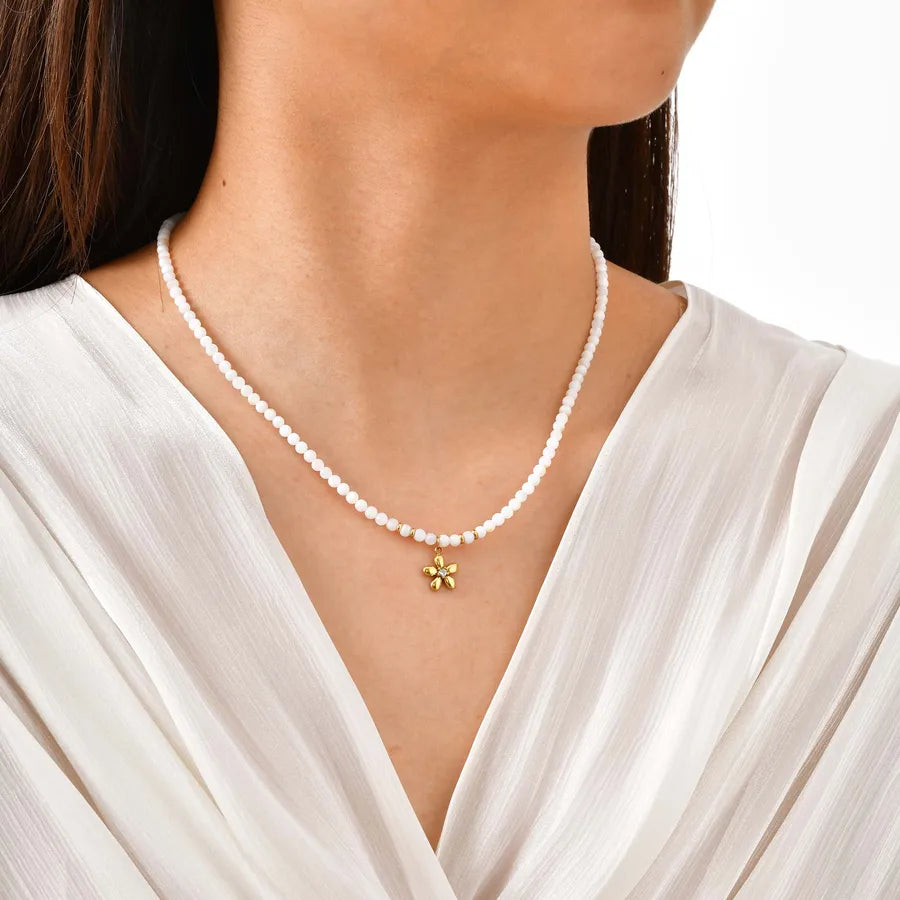 Elegant French Style Stainless Steel Pearl Chain Flower Necklace Women's Jewelry Accessories Lobster Clasp 18K Gold Plated
