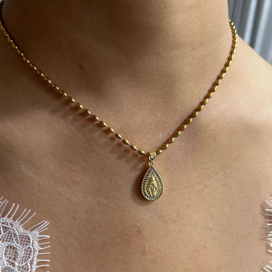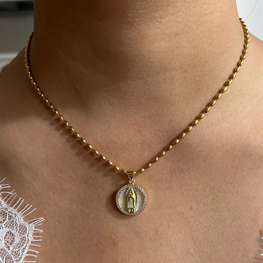 Fashionable Copper Madonna Pendant Necklace With Luxury Stainless Steel Clavicle Chain Versatile Jewelry For Women Lobster Clasp