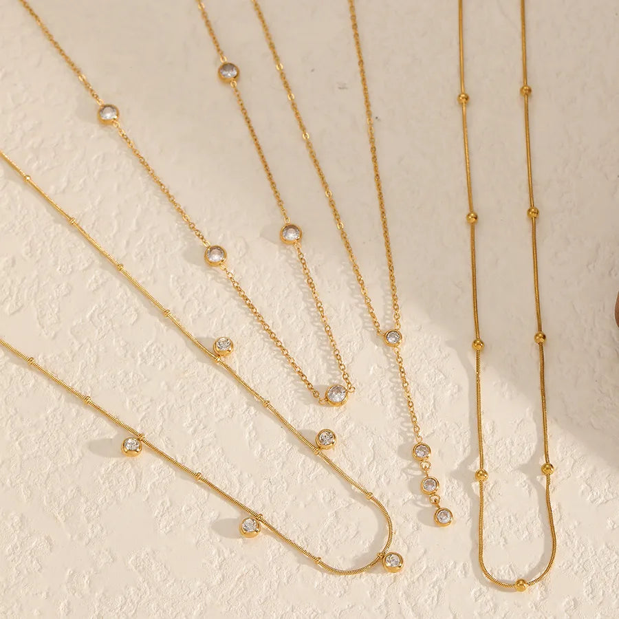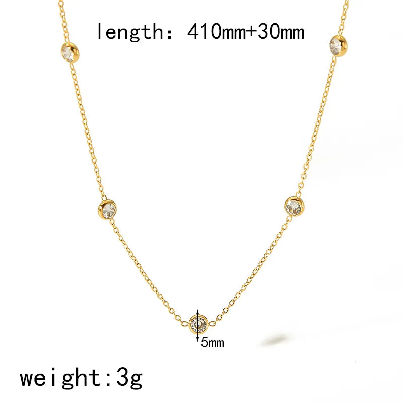 Fashionable Geometric Zirconia Embedded Stainless Steel Necklace Women's 18K Gold Plated Lobster Clasp Casual Shopping Accessory