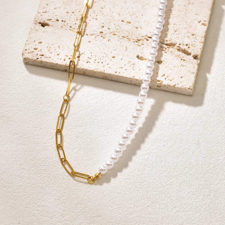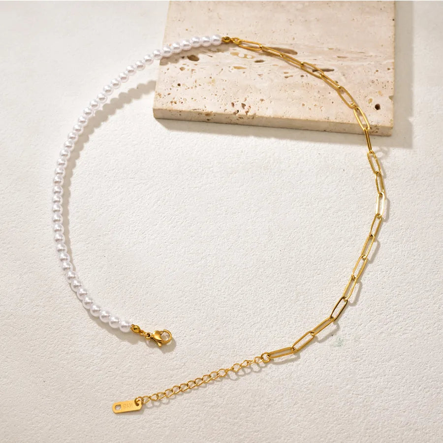 Fashionable L94 Necklace Pearl Stainless Steel Titanium Plated Simple Golden Color Women's Pendant Lobster Clasp Bead Chain Style
