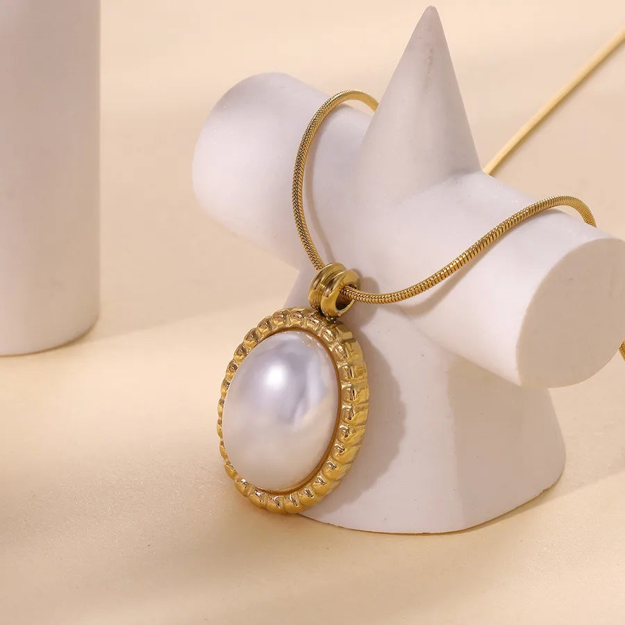 Luxurious 18K Gold Plated Stainless Steel Pearl Necklace Vintage Ruffle Geometric Round Design Simple Creative Jewelry For Women