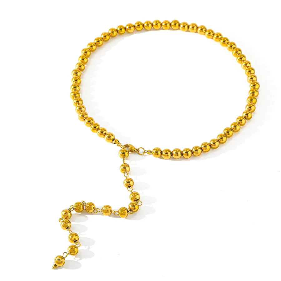 Luxury Geometric Beaded Round 18K Gold Plated Stainless Steel Necklace High-End Style Casual Elegant Women's Jewelry Accessory