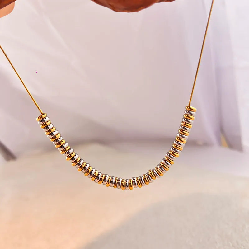 Stainless Steel Beaded Necklace Titanium Steel Link Chain Color Block Design Circle Contrast Design Simple Fashion Jewelry
